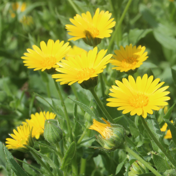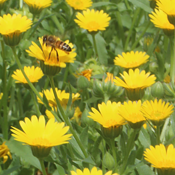 gelbe, zierlich blühende, bis 30 cm hohe, wilde Ringelblume, blüht bis zu den ersten Frösten, bildet dichte Büsche.