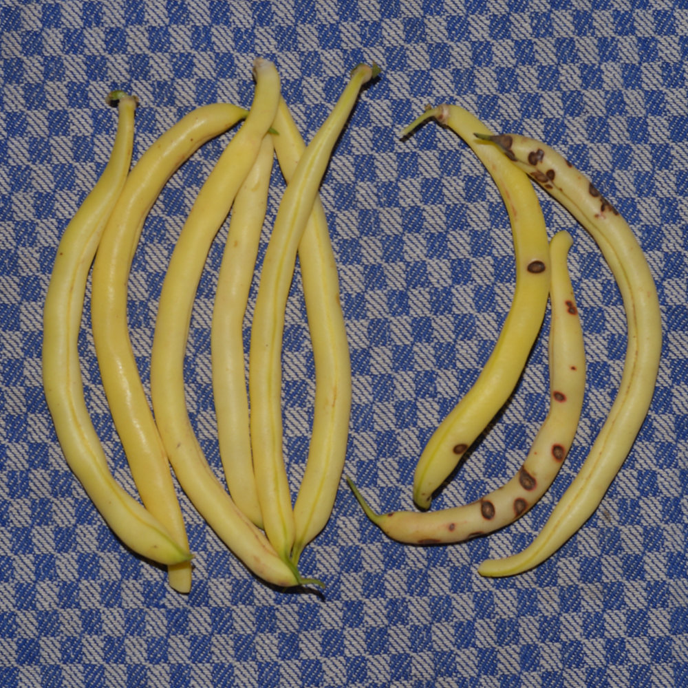 alte, amerikanische Sorte mit hohem Ertrag und aromatischen, gelben Hülsen besonders für Bohnensalat. Die Sorte ist sehr anfällig für Brennflecken, daher nur für gute, trocken-warme Standorte zu empfehlen. Die reifen Samen sind weiß mit schwarzer Nabelzeichnung.