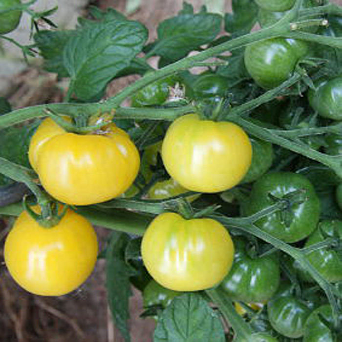 weitgefächerte, nach Zitronen duftende Blüten- und Fruchtwolken, die sehr viele schöne, zartgelbe, geriefte, saftige, mild-aromatische Tomätchen tragen: eine Besonderheit! .