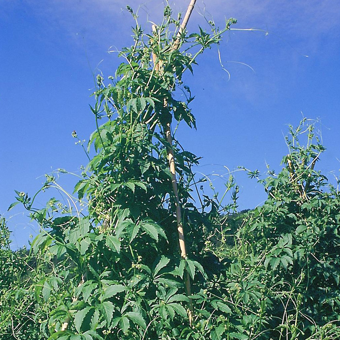 einjähriges, über 2 m hohes, stark rankendes Kürbisgewächs mit hellgrünen, hanfähnlichen Blättern zum raschen und attraktiven Begrünen z.B. von Zäunen, Fassaden (Bänder spannen) oder Gartenlauben. Die sanft nach Honig duftenden, unscheinbaren Blüten bringen zahlreiche, merkwürdige, später leicht hörnchenförmige Früchte hervor, die in Olivengröße roh gegessen gurkenähnlich schmecken oder eingelegt bzw. gebraten geschmacklich an Spargel erinnern. Ältere Früchte können nach dem Entfernen der Samenanlagen oder Samen noch prima zum Befüllen und Überbacken verwandt oder in Streifen geschnitten gebraten werden.