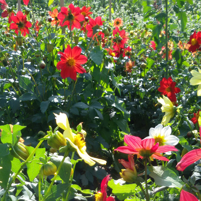 ca. 50 cm hoch, Mischung ungefüllter Blüten in Gelb-, Orange- und Rottönen. Bei Aussaat bis März blühen die Pflanzen ab dem ersten Jahr. Sie brauchen wenig Platz und sind auch für Töpfe und Balkonkästen geeignet. Sie werden gerne von Insekten besucht. Knollen frostfrei überwintern und im nächsten Jahr wieder auspflanzen!