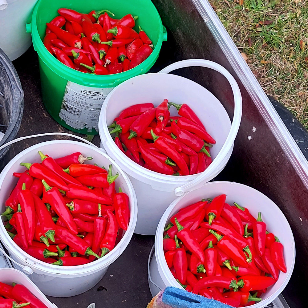 sehr fruchtige, aromatische, leicht scharfe, rote, spitze Früchte für die Herstellung von fruchtigem Paprikapulver. Die Sorte kommt aus Bhutan. Besondere Freilandeignung.