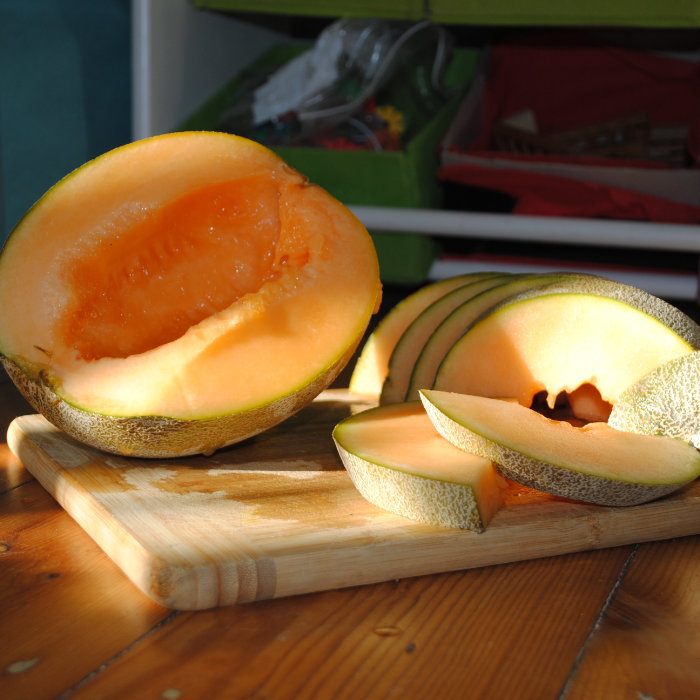 runde Sorte mit orangefarbenem Fruchtfleisch und stark netzförmiger Schalentextur. Um 1750 durch französische Flüchtlinge nach Berlin gekommen. Saftig, süß und schmackhaft.