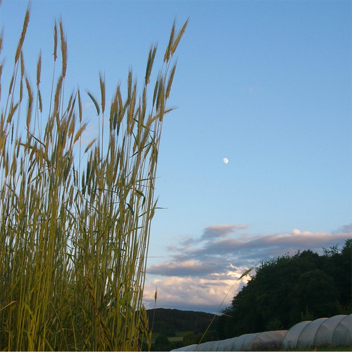 Er ist mit seinen bis zu 1,80 m hohen Halmen deutlich "zierlicher" als der Schmidtroggen.