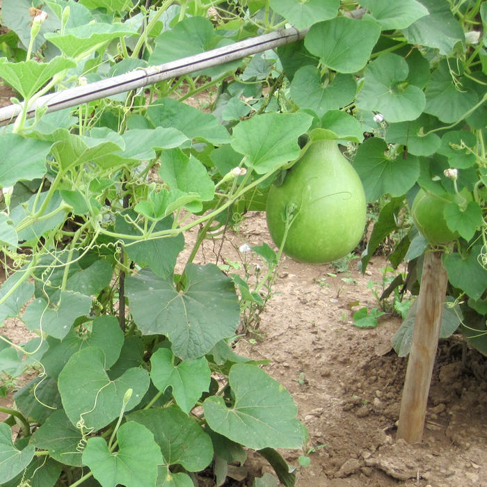 wärmeliebendes, einjähriges, rankendes Kürbisgewächs.