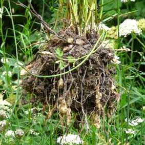 Die Ernte der Wurzelknollen erfolgt nach der Samenreife im zweiten Jahr, so kann auch Saatgut für Folgeaussaaten gewonnen werden.
