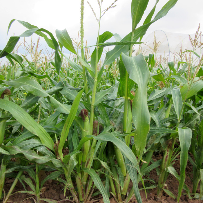 niedrige, sehr frühe Sorte. Bildet meist mehrere, eher kleine Kolben, die von weiß über gelb nach violett-blau abreifen.