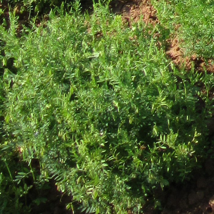 Die Marmorierte Linse wächst aufrecht mit zierlichen blauen Blüten. Die Samen sind braun marmoriert und im Inneren orange. Ertragreiche alte Landsorte mit hohem Zierwert.
