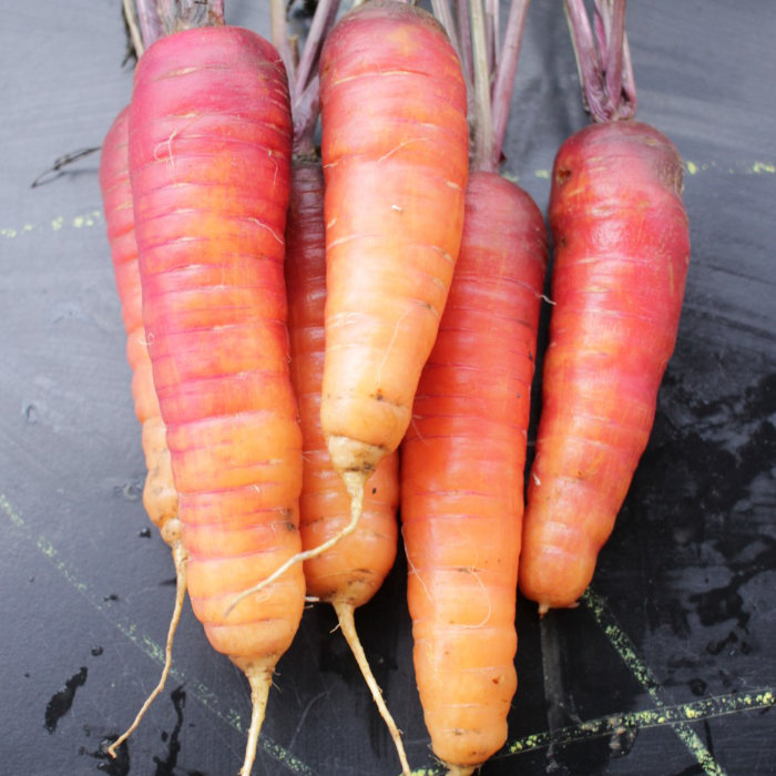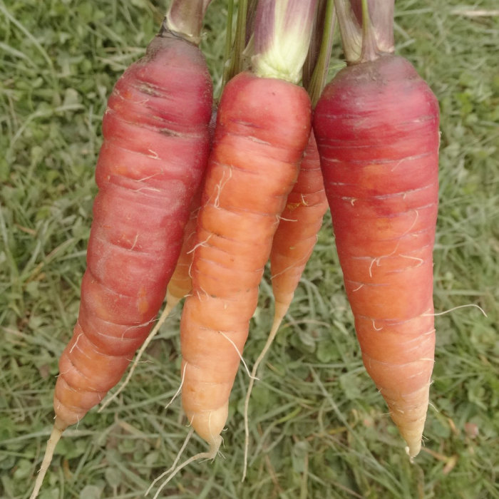 mittelfrühe Sorte mit kräftiger, konisch geformter Wurzel von angenehmer Süße. Dunkelrote bis kräftig violette Schale, innen orange.
