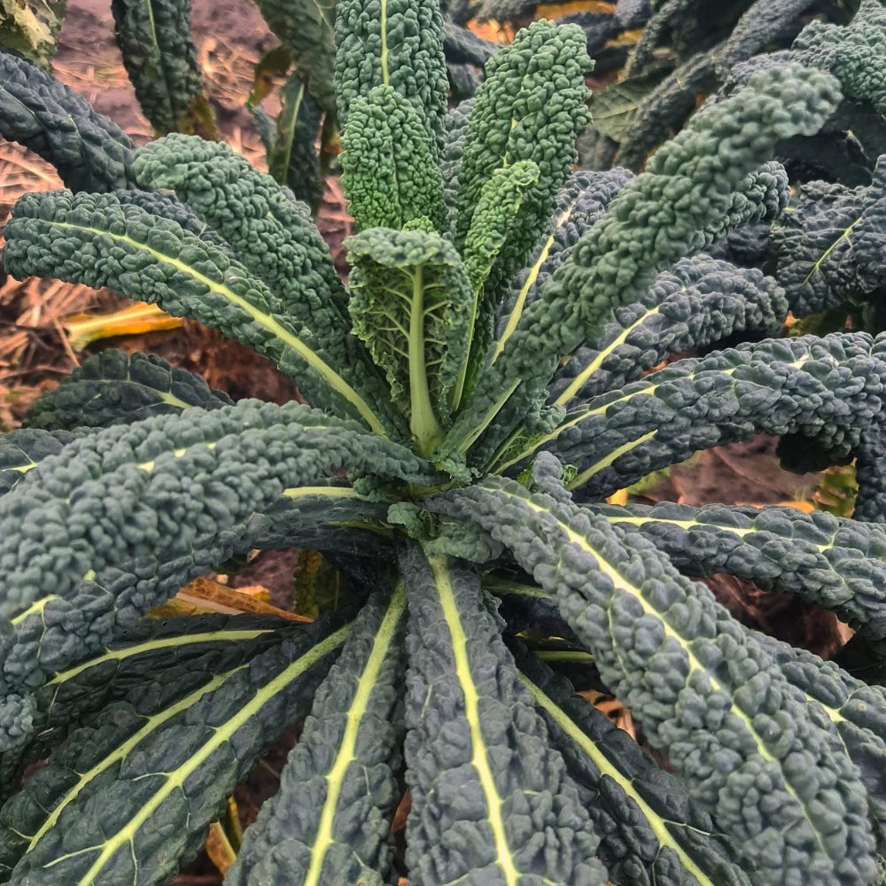 ist auch als italienischer Schwarzkohl bekannt. Wird ca. 1 m hoch, mit offener Blattrosette, ähnlich wie Grünkohl, und sehr dekorativen blaugrünen, blasigen Blättern. Mild-nussig im Geschmack, besonders aromatisch in Öl gedünstet oder roh im Salat. Verträgt etwas Frost.