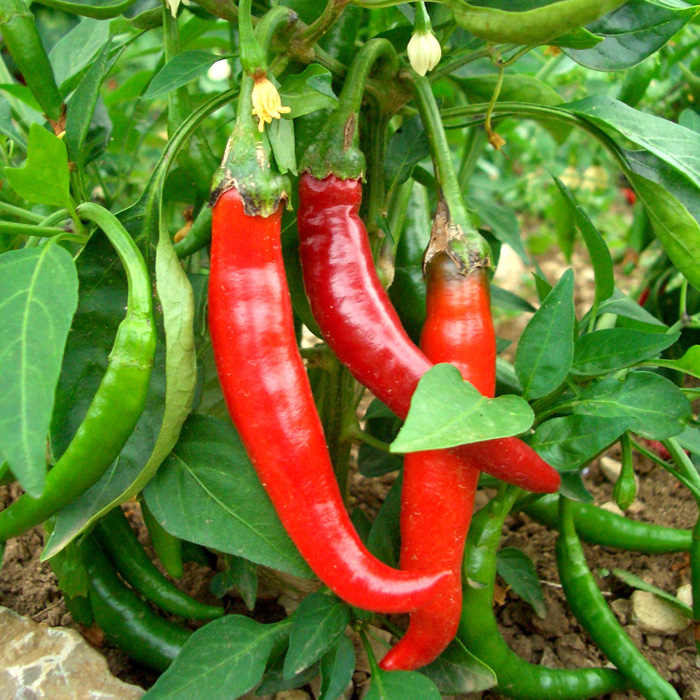 fruchtig scharfe, lange Früchte, die leuchtend rot reifen. Besondere Freilandeignung. v E Jan.-Feb., p ab M Mai (Freiland) auf 50x40. Inhalt reicht für ca. 15 Pflanzen.