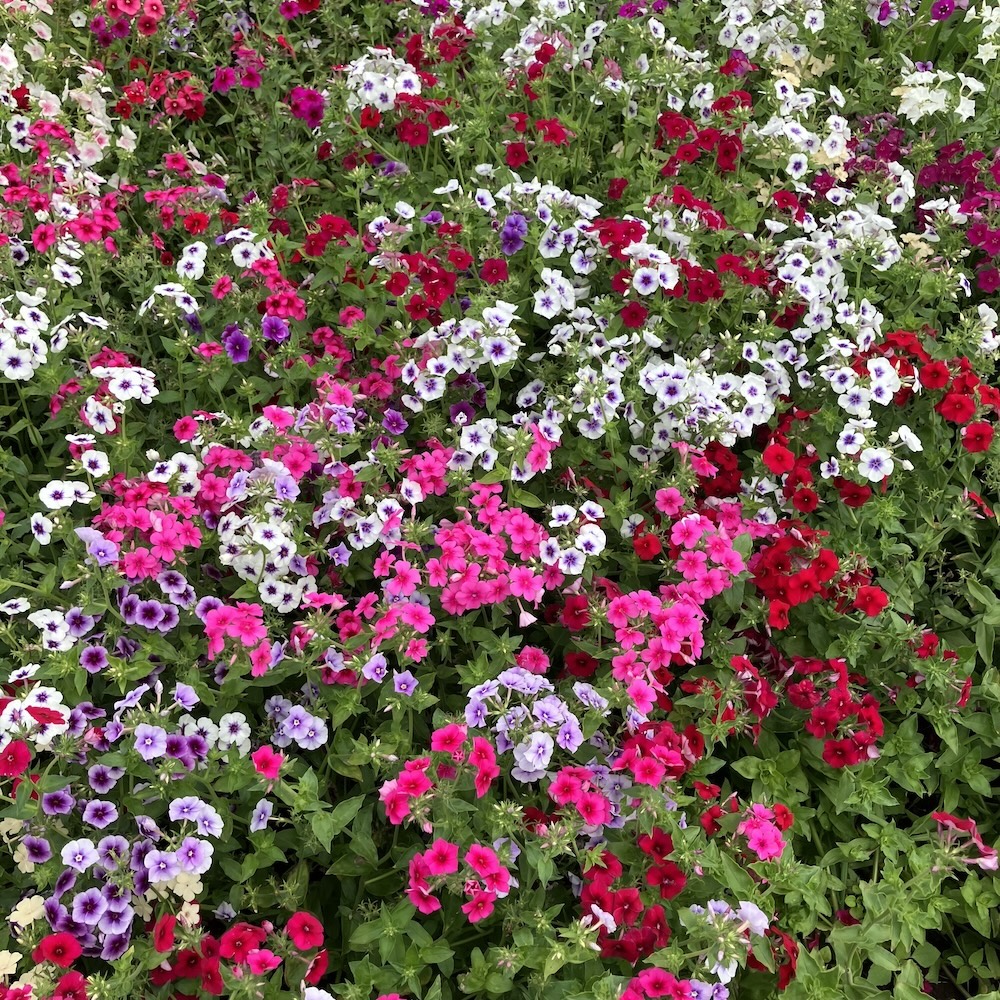 bunte Mischung in vielen Farben, großteils mit verschiedenen Farbkombinationen pro Blüte. Die Farbenvielfalt zeigt sich in Violett, Rot, Pink, Blau, Weiß, Apricot, Blau, Beige, Rosa ...