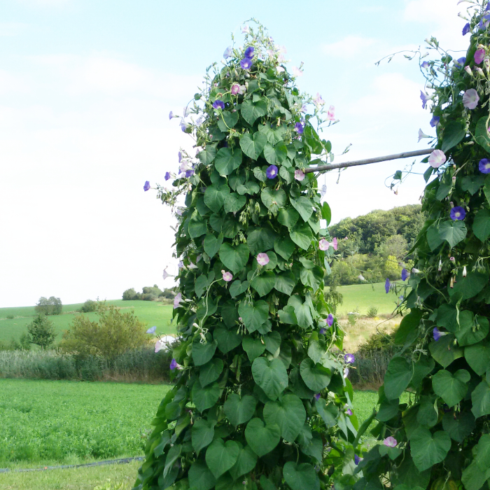 blüht blau, pink und rosa, windet bis zu 5 m hoch.