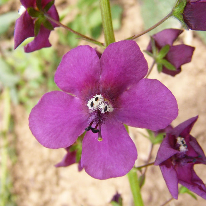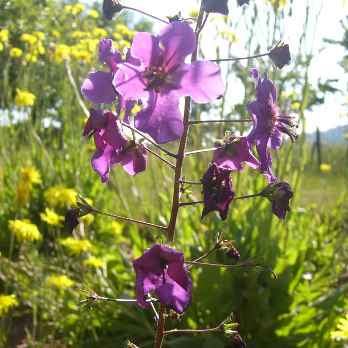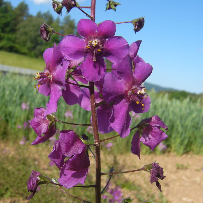 zierliche Stein- und Staudengartenpflanze, besonders für trocken-warme Standorte. Bis 1 m hoch, violette Blüten mit gelbem Grund.