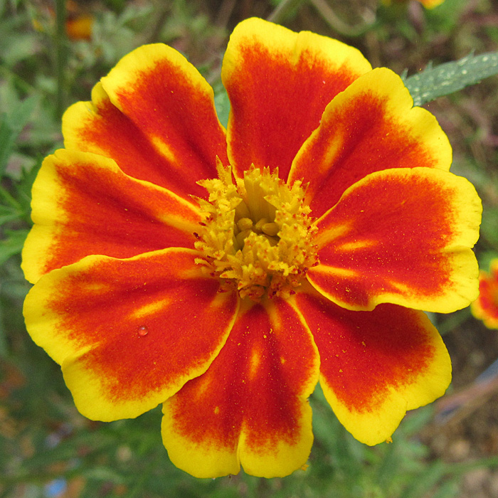 ungefüllte, gelb, rot und orange gefärbte Blüten von etwa 3-7 cm Durchmesser mit abgestutzten Kronblättern. Wuchshöhe unter günstigen Bedingungen bis ca. 1,50 m. Typischer aromatischer Geruch, wird im Orient auch als Gewürzpflanze verwendet.