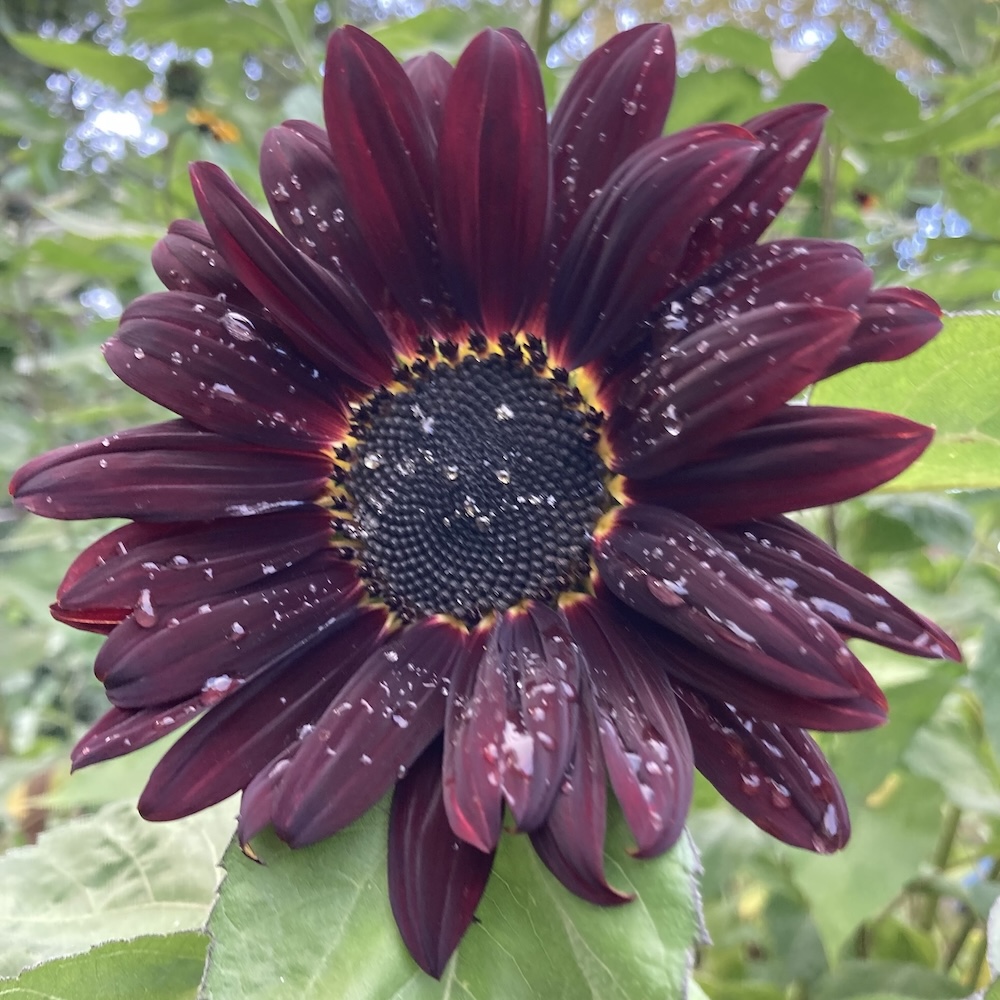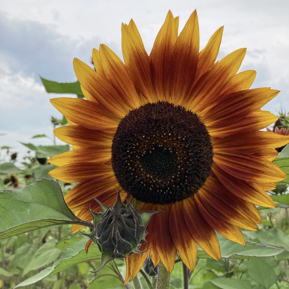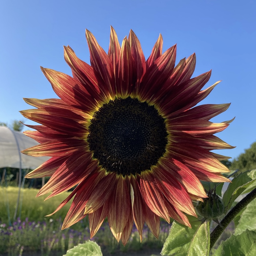 die über 2 m hohen Pflanzen blühen in einer Mischung vieler Rottöne.