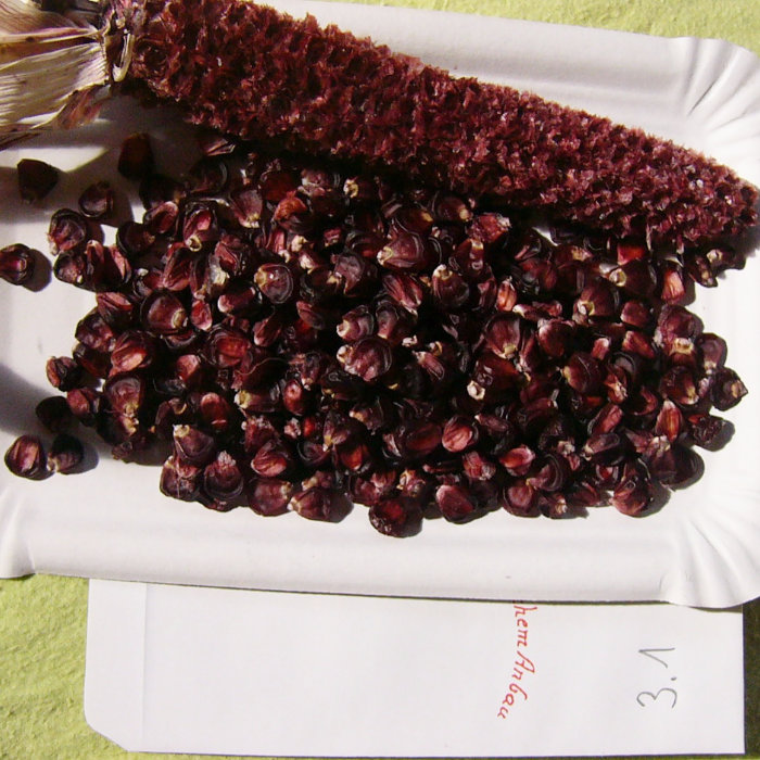 aus Rainbow entwickelte Sorte, deren Kolben - wie bei dieser - schon in der späten Milchreife farbig sind: verschiedene Gelb-, Rosa- und vor allem Rottöne mit teils geflammten Körnern.