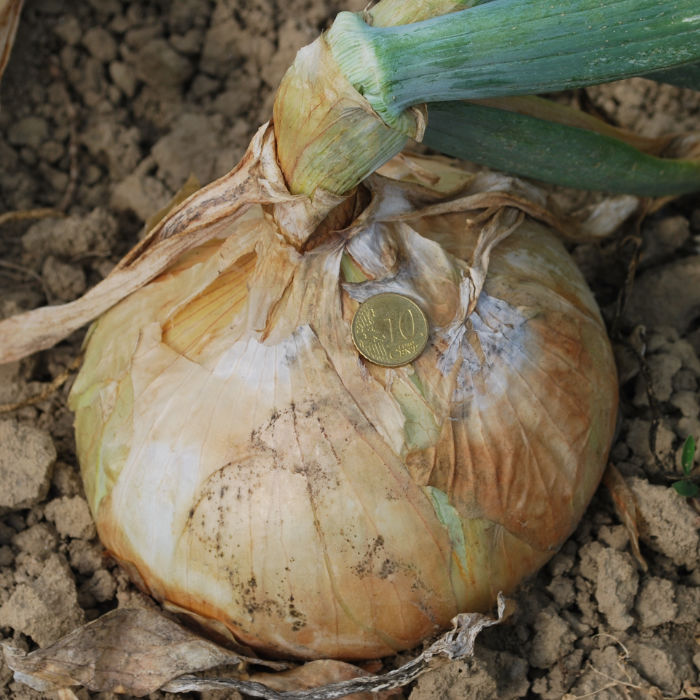 runde, sehr milde Zwiebel bis 1 kg. Gute Lagerfähigkeit.