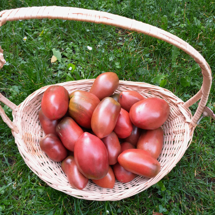 alte, aus der Ukraine stammende, platzfeste Sorte. Die vielen saftig-cremigen und süßen länglich-ovalen Früchte mit weicher Schale werden ca. 200 g schwer. Eine Ode an den Geschmack!