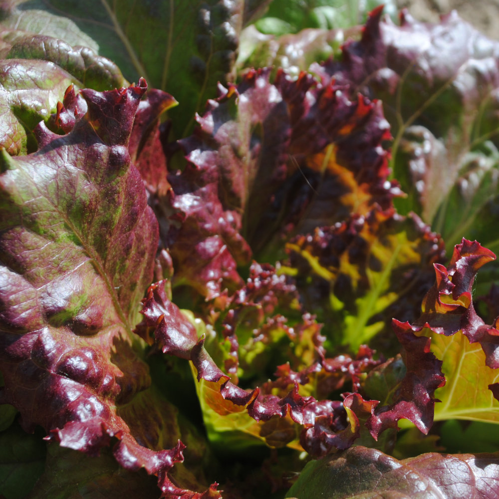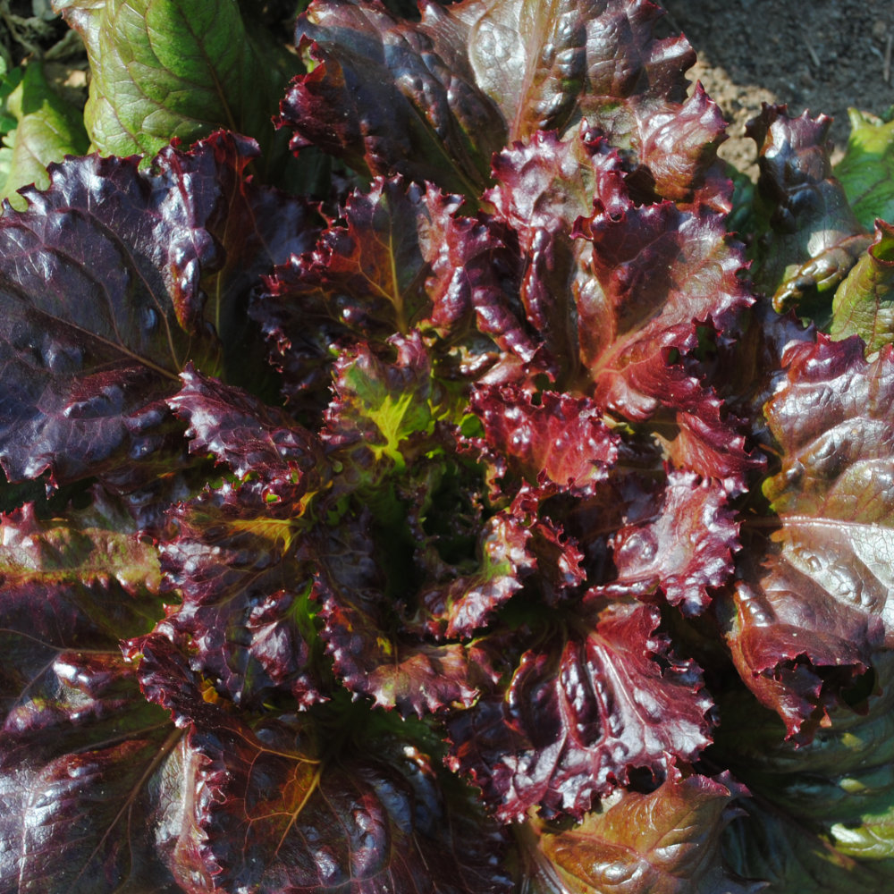 besonderheit mit gezackten und knackigen Blättern bei weit ausladender Blattrosette. Blattfarbe an den Spitzen von grün nach rot überlaufend. Ernten durch Pflücken der äußeren Blätter oder Schnitt der ganzen Rosette. Zum Keimen eher kühl stellen (12 bis 16 ◦ C).