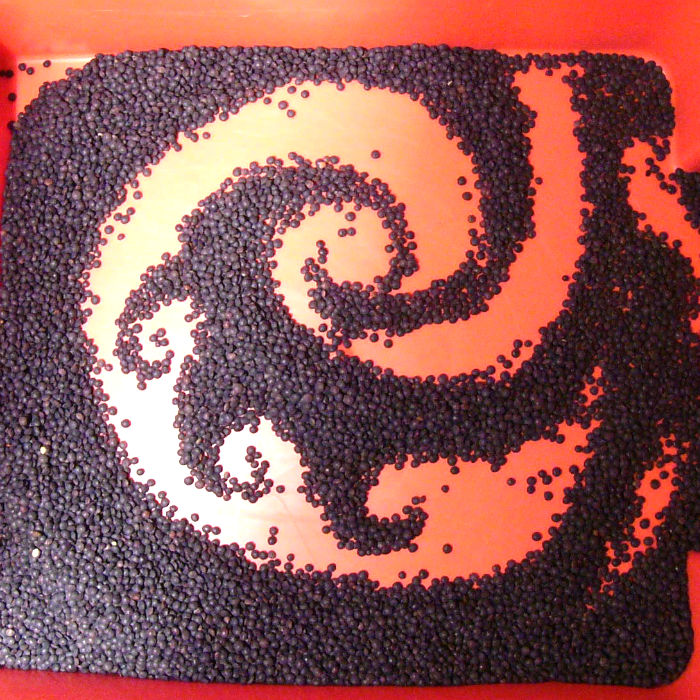 kleine schwarze Samen, aufrechter Wuchs, blaue Blüten.