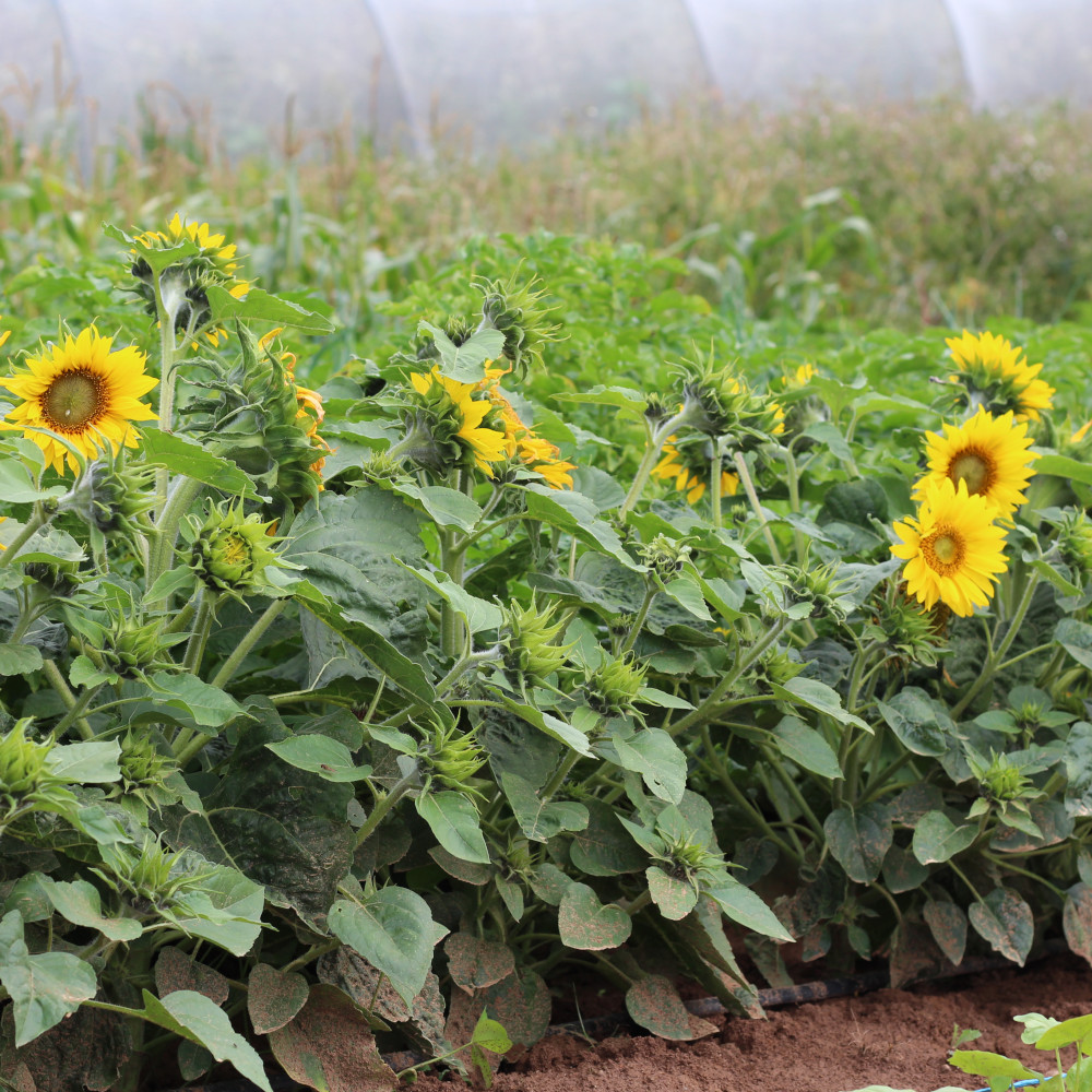 Paccino ist eine niedrige, kompakt wachsende Sonnenblume mit zahlreichen leuchtend gelben, ungefüllten Blüten.