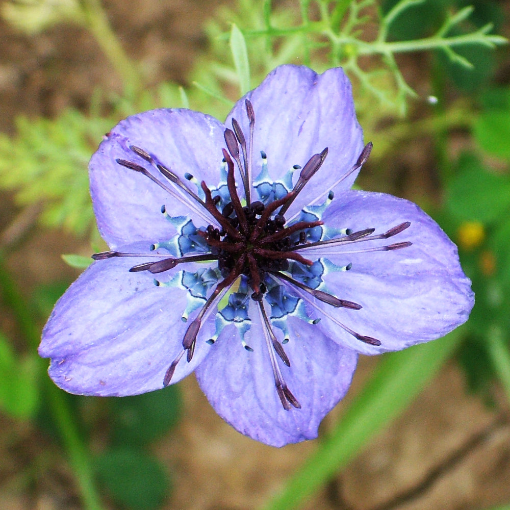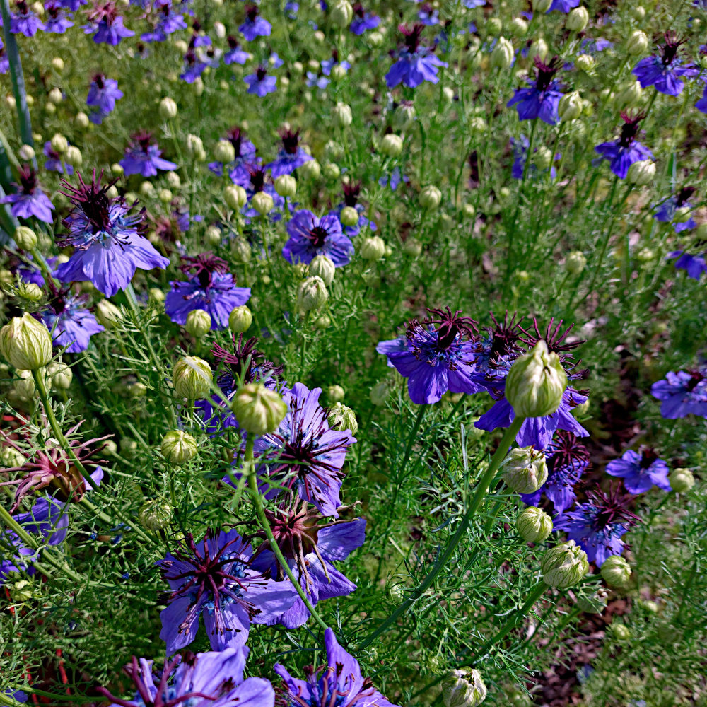 Spanischer Schwarzkümmel wird ca. 50 cm hoch mit wunderschönen, dunkelblauen Blüten und kronenförmigen Samenkapseln, die sich gut für Trockensträuße eignen.