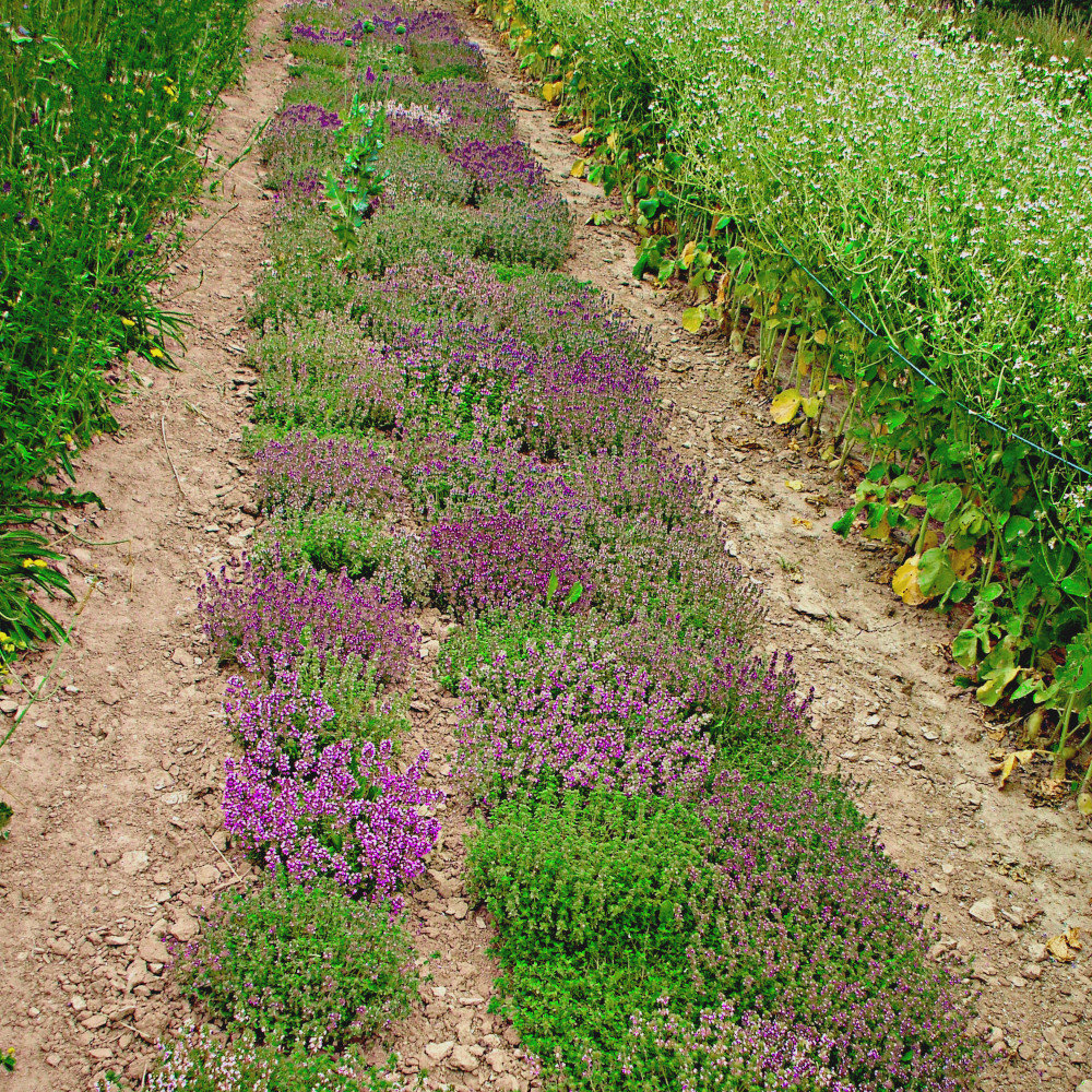eine Selektion verschiedener, nach Zitrone duftender Thymianpflanzen aus Ostdeutschland, die prächtige Blütenteppiche für Insekten hervorbringt.